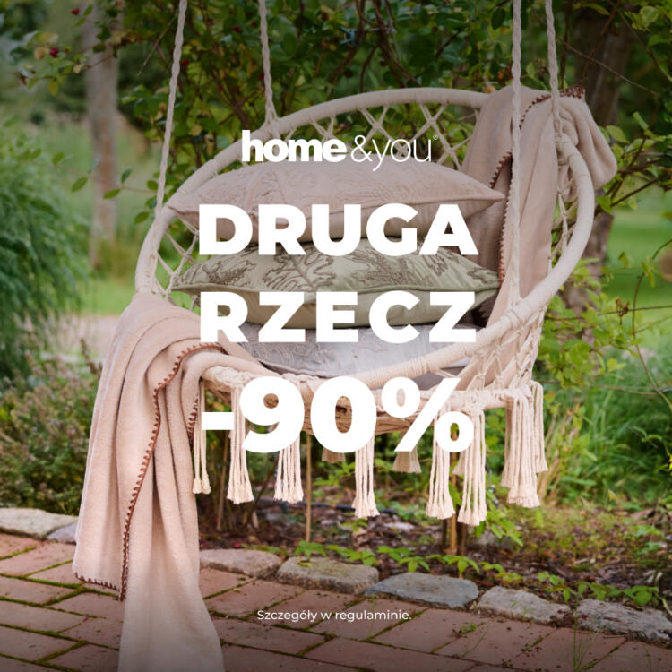 Zrób zakupy w home&you i oszczędzaj — za każdy drugi, tańszy produkt z promocji zapłacisz aż o 90% mniej! Szczegóły w regulaminie i na home-you.com